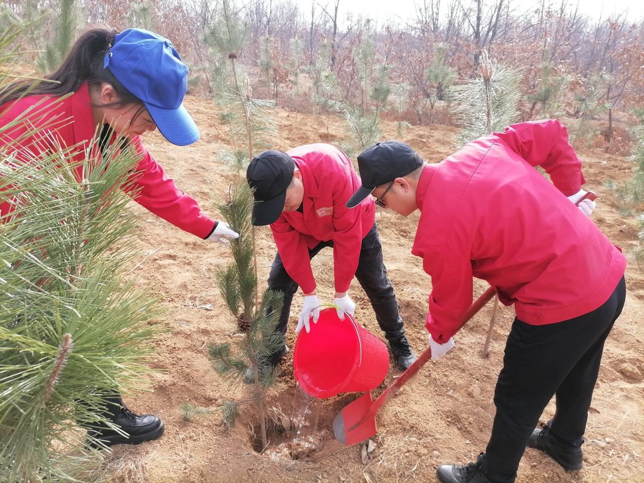 一桶清水,灌溉希望,一棵樹苗,承載未來。植樹現(xiàn)場黨旗、司旗、黨小組旗、團(tuán)旗在風(fēng)中迎風(fēng)飄揚(yáng),植樹活動(dòng)中,大家熱情高漲、干勁十足,全體參加人員發(fā)揚(yáng)不怕苦、不怕臟、不怕累的精神,分工協(xié)作、揮鍬鏟土、扶樹填坑、踏土夯苗、提水澆灌,有條不紊地完成植樹各個(gè)環(huán)節(jié)。經(jīng)過大家一上午的共同努力,一株株新栽種的樹苗迎風(fēng)挺立,為大地增添了勃勃生機(jī)。