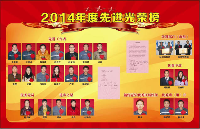 2014年全年工作中,二十三位同志和兩個優(yōu)秀班組表現(xiàn)突出,踐行公司“價值、實干、實效”的工作理念,認(rèn)真工作,愛崗敬業(yè),始終保持旺盛的精神風(fēng)貌和飽滿的工作激情,在各自工作崗位樹立了榜樣,被評為公司的先進代表。