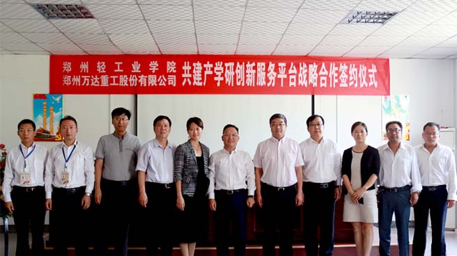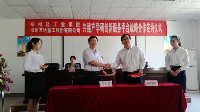 2016年9月21日,由鄭州萬達(dá)重工股份有限公司與鄭州輕工業(yè)學(xué)院共同建立的產(chǎn)學(xué)研創(chuàng)新服務(wù)平臺戰(zhàn)略合作簽約揭牌儀式在鄭州萬達(dá)重工股份有限公司順利舉行。