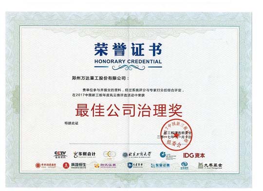 熱烈祝賀鄭州萬達(dá)重工股份有限公司榮獲 “2017年中國新三板年度風(fēng)云榜”最佳公司治理獎(jiǎng)