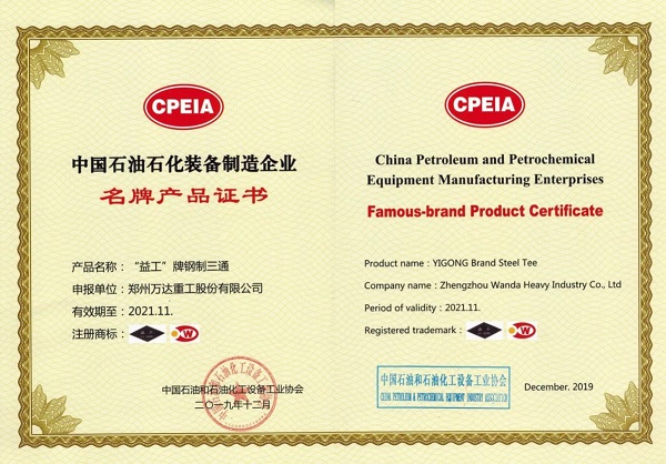 為更好落實(shí)“中國(guó)制造2025”的發(fā)展戰(zhàn)略,培育企業(yè)具有科技創(chuàng)新水平的名牌產(chǎn)品,根據(jù)《中國(guó)石油石化裝備制造服務(wù)行業(yè)名牌產(chǎn)品推薦辦法》規(guī)定,經(jīng)過(guò)企業(yè)自愿申報(bào)、行業(yè)部門初審、專家評(píng)審等環(huán)節(jié),萬(wàn)達(dá)重工 “益工”牌“堆焊復(fù)合彎頭”和“益工牌鋼制三通”等2類產(chǎn)品被中國(guó)石油和石油化工設(shè)備工業(yè)協(xié)會(huì)評(píng)定為中國(guó)石油石化裝備制造企業(yè)名牌產(chǎn)品并頒發(fā)證書。