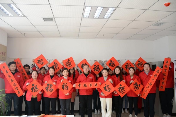 以寫春聯(lián)、書福字為主題的送溫暖活動(dòng),是萬(wàn)達(dá)重工多年來(lái)一直堅(jiān)持的傳統(tǒng)活動(dòng),一副副福字不僅蘊(yùn)含了股份公司對(duì)全體員工的美好祝福,更寄托了大家對(duì)新的一年的美好期望。通過(guò)開展“喜迎新春 寫福送福”活動(dòng),既傳播了中國(guó)傳統(tǒng)文化,增添了節(jié)日氛圍,又拉近了股份公司與員工之間的距離,讓大家在感受中國(guó)傳統(tǒng)文化的同時(shí),折射出“平安、悅享、感恩、幸福”的企業(yè)關(guān)愛(ài)理念。最后,工會(huì)主席于江山、各工會(huì)委員同公司書法愛(ài)好者們進(jìn)行合影留念,此次活動(dòng)所寫的福字將與發(fā)放的春節(jié)禮品一起全部送到所有萬(wàn)達(dá)員工手中。