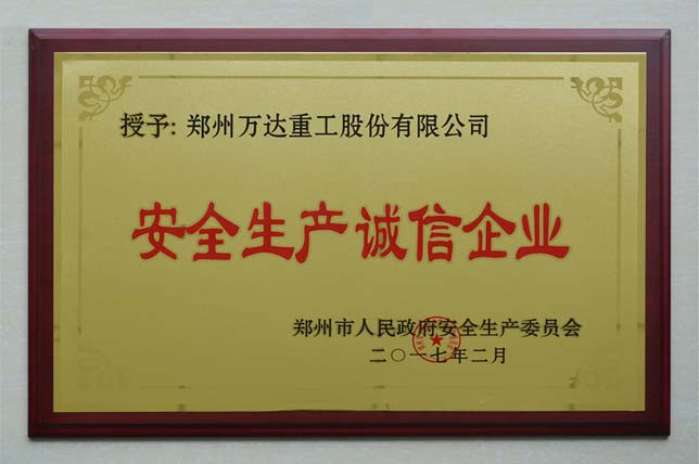 熱烈祝賀鄭州萬達(dá)重工股份有限公司榮獲鄭州市安全生產(chǎn)誠信企業(yè)