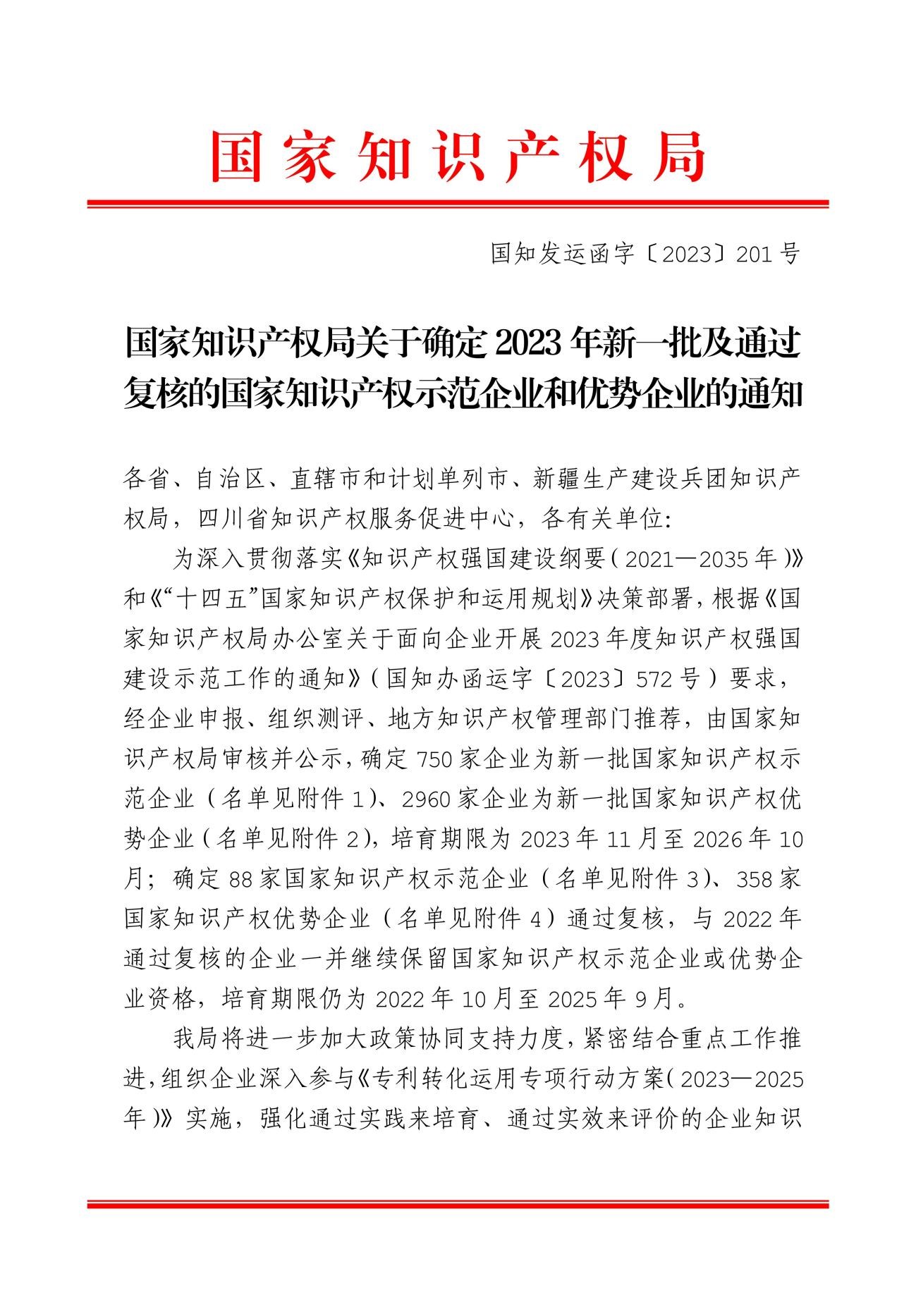 2023/12/08 1037 2023年11月29日,國(guó)家知識(shí)產(chǎn)權(quán)局公布了2023年度國(guó)家知識(shí)產(chǎn)權(quán)示范企業(yè)和優(yōu)勢(shì)企業(yè)評(píng)定結(jié)果,鄭州萬(wàn)達(dá)重工股份有限公司(以下簡(jiǎn)稱“萬(wàn)達(dá)重工&rdq