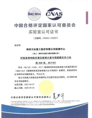 2022/05/13 613 近日,鄭州萬(wàn)達(dá)重工股份有限公司檢測(cè)中心順利通過(guò)中國(guó)合格評(píng)定國(guó)家認(rèn)可委員會(huì)(以下簡(jiǎn)稱CNAS)的審核,并獲得CNAS實(shí)驗(yàn)室認(rèn)可證書(shū)(注冊(cè)號(hào)L16323),這標(biāo)志著萬(wàn)達(dá)重工在實(shí)驗(yàn)室建設(shè)、試驗(yàn)及檢測(cè)能力和質(zhì)量保障等方面取得了新的成果,代表著公司的技術(shù)能力和管理水平具備國(guó)際水準(zhǔn)的規(guī)范性和公信力,提升了品牌影響力和企業(yè)的核心競(jìng)爭(zhēng)...